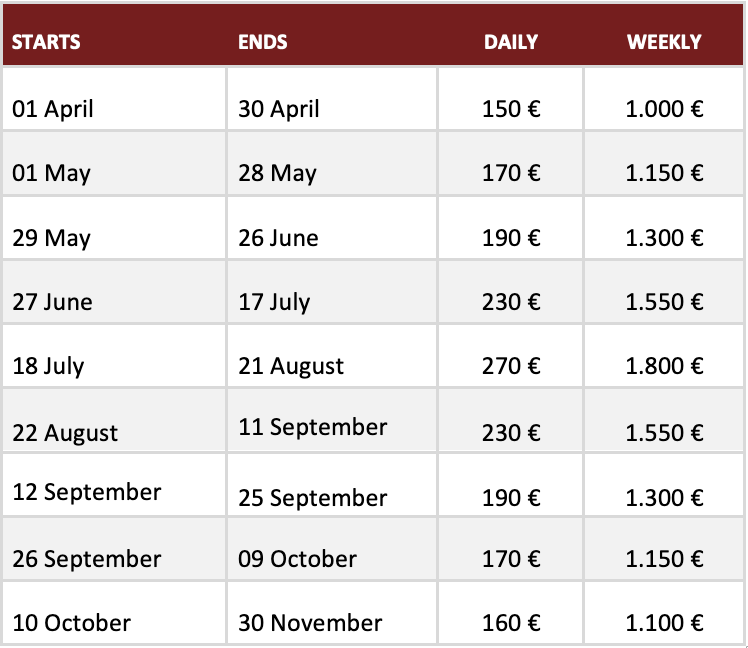 For groups larger than 4 people the whole villa is provided with a small additional cost depending on the number of quests.